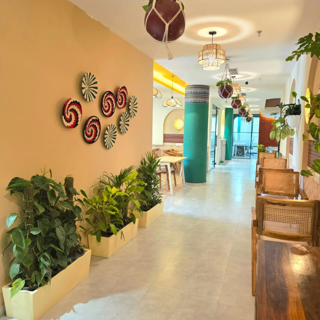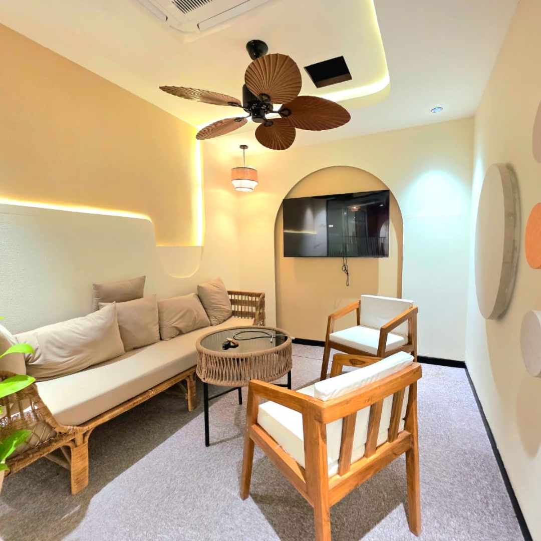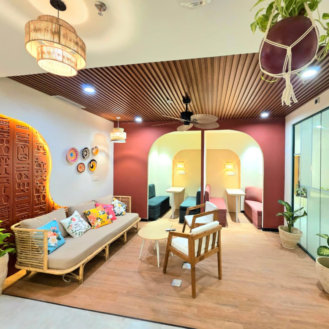 Warm, inviting lounge for brainstorming, meetings, relaxing.